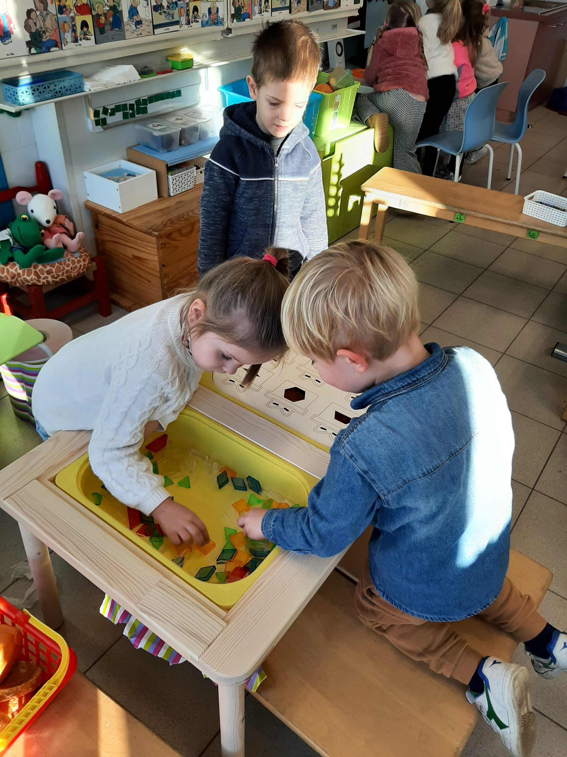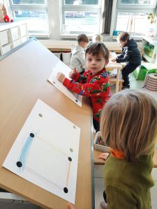 In de schrijfmotoriek werden deze vormen ingeoefend en in de hoeken werd er met vormen gespeeld.