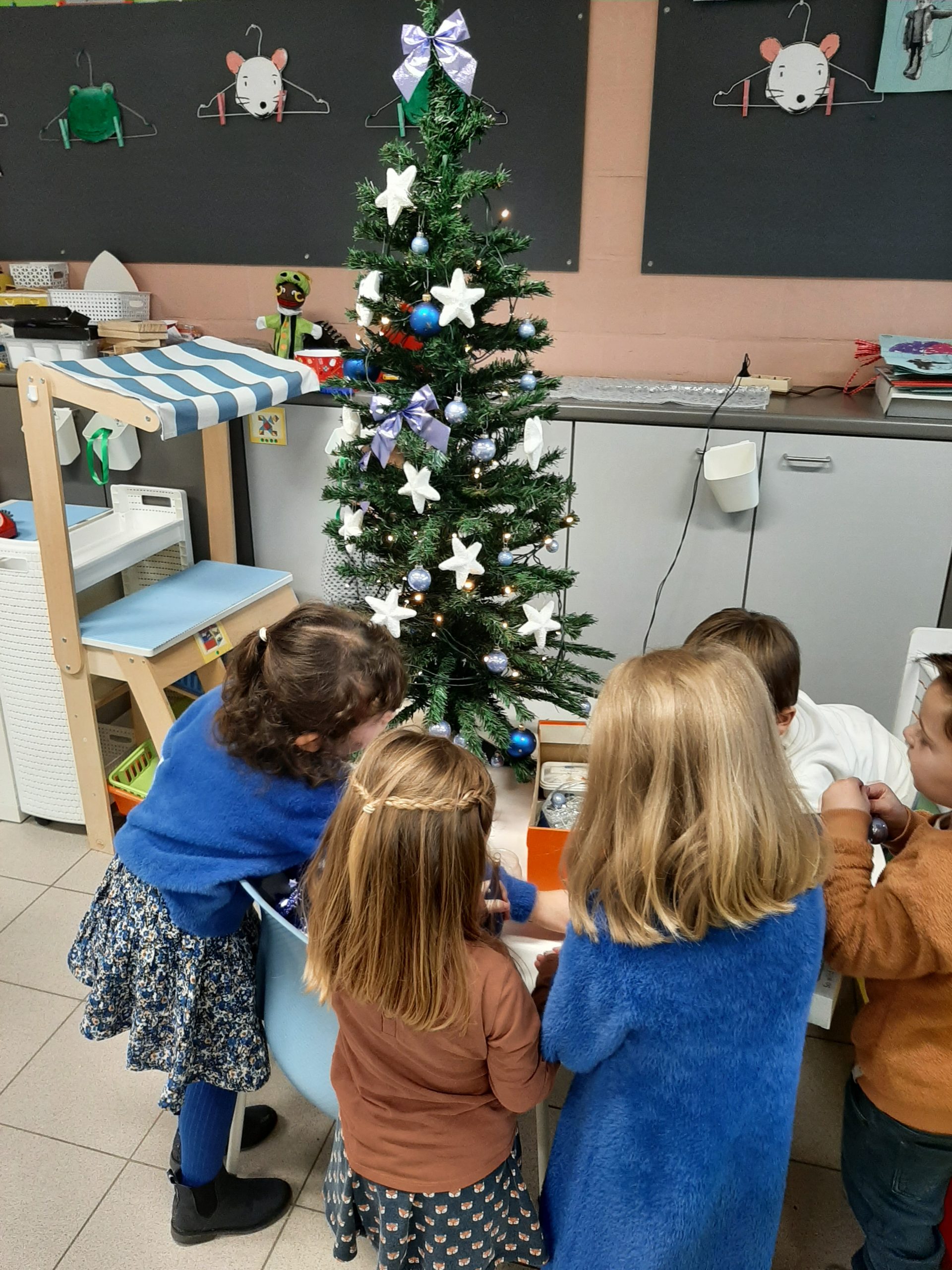 Onze klas werd sfeervol versierd. Pakjes werden verzameld onder de kerstboom, het kerstverhaal kwam aan bod, in alle hoeken werden kerstbomen versierd en onze nieuwjaarsbrief werd aangeleerd en geknutseld. We waren dus druk in de weer.