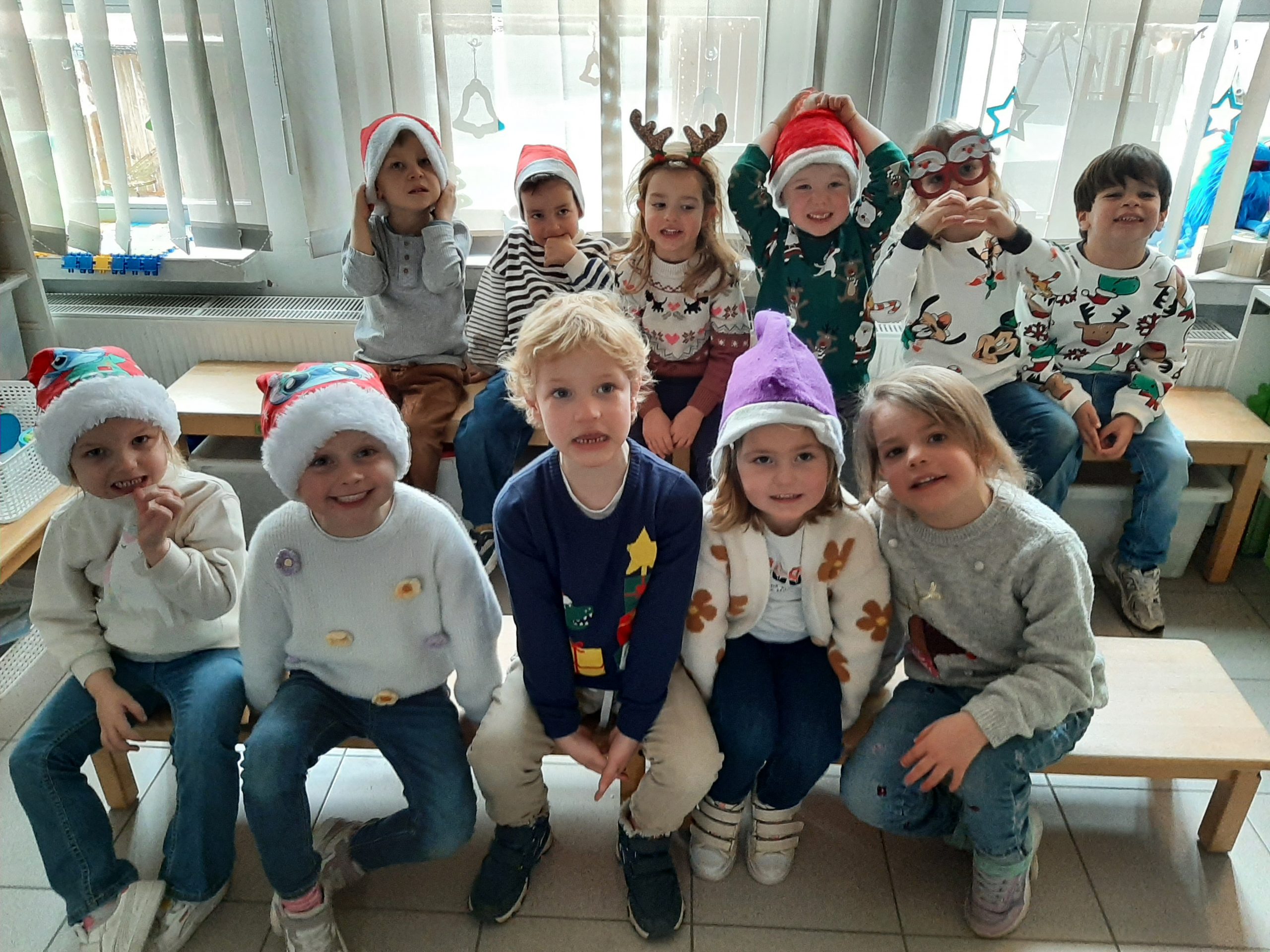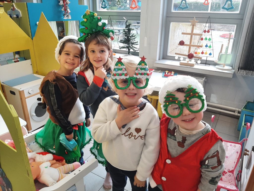 We leerden ook een kerstdans met bijpassend liedje en gingen zelfs werken in het eerste leerjaar. Samen kleurden we kerstballen voor de kerstmarkt.