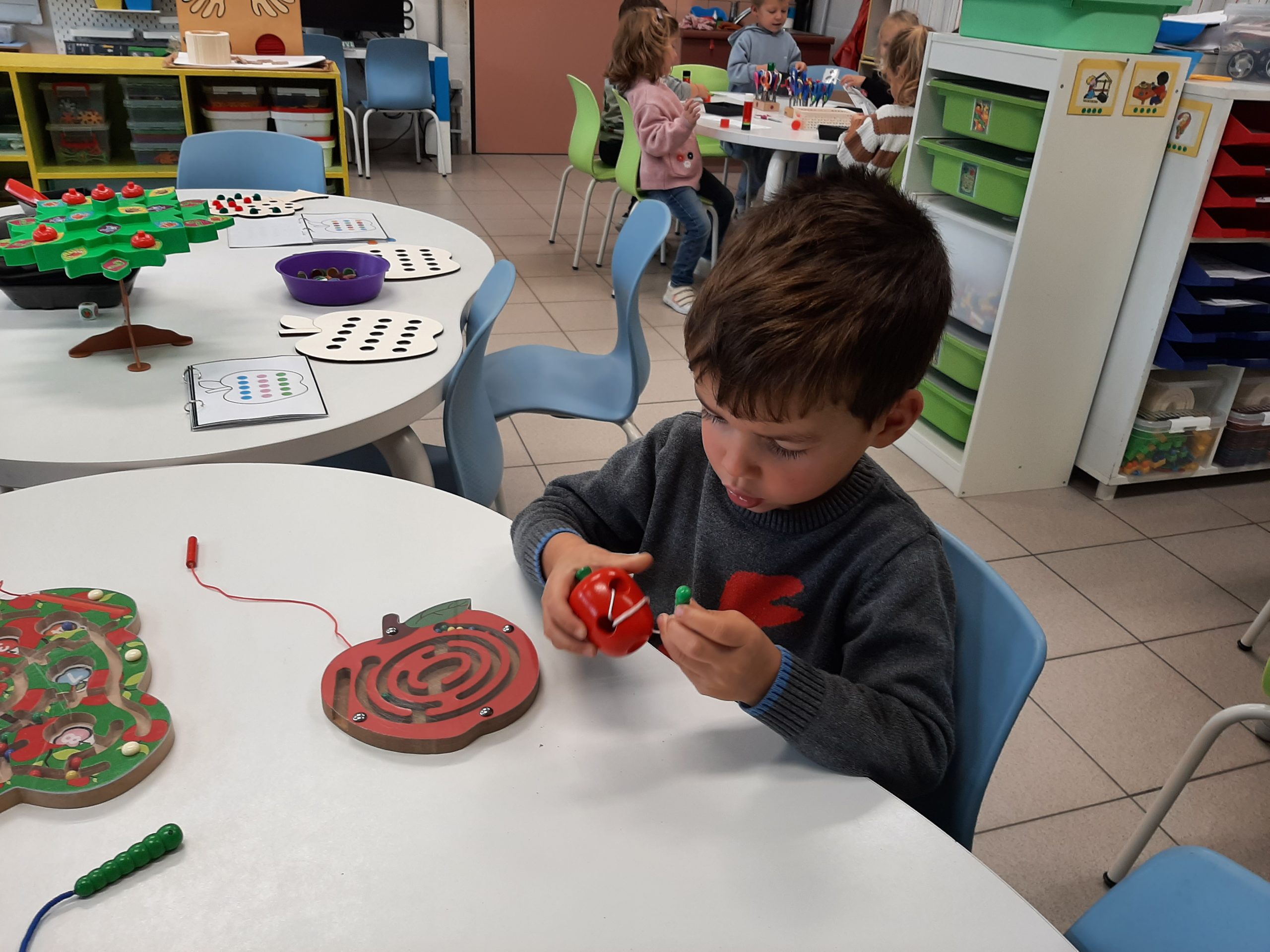 Daarna kwam het logisch rangschikken aan bod: appels rangschikken van klein naar groot en een appel eten.