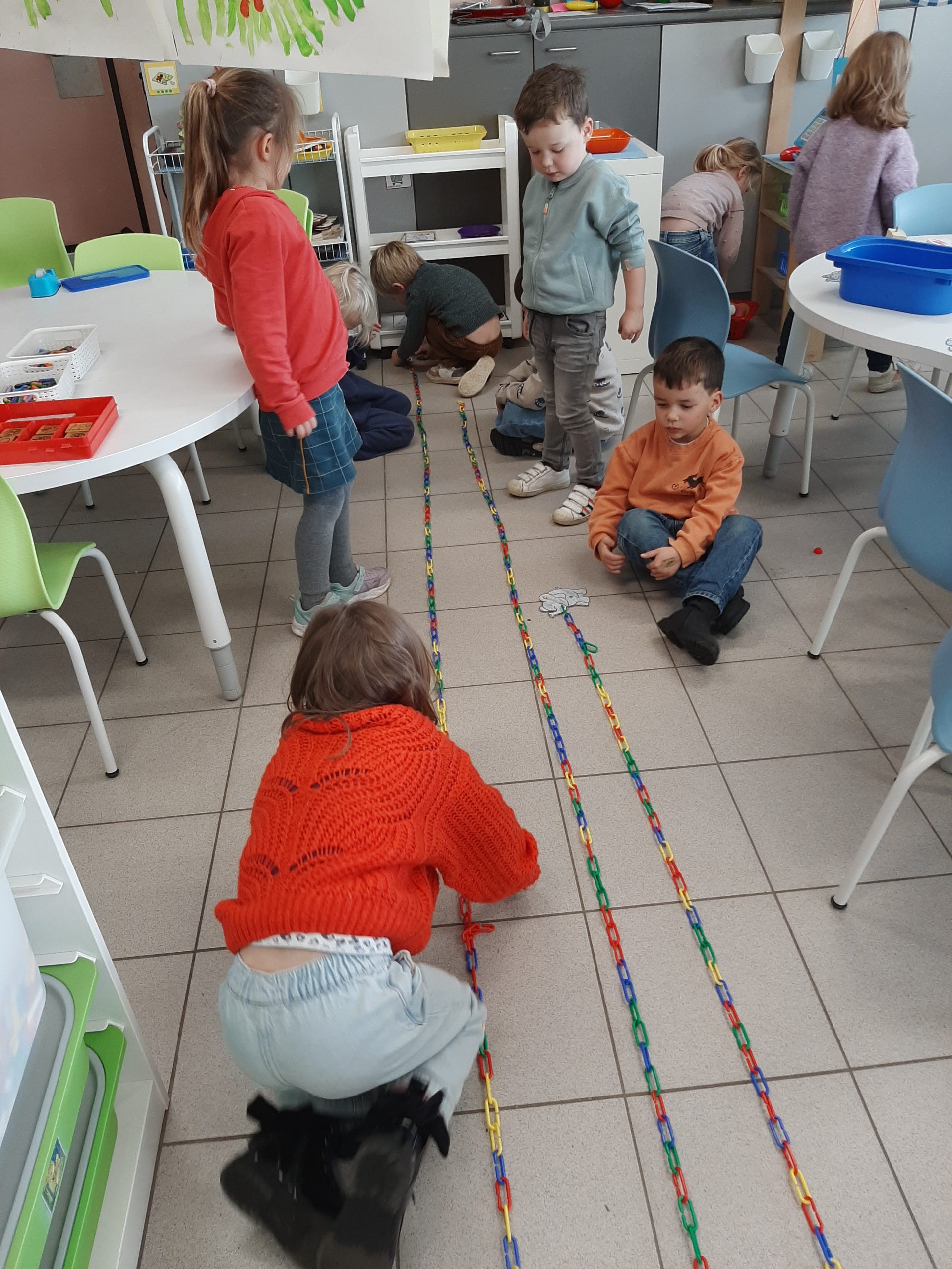 Met de schakels mochten we de slurf van de olifant maken en zo kwamen we tot meten!