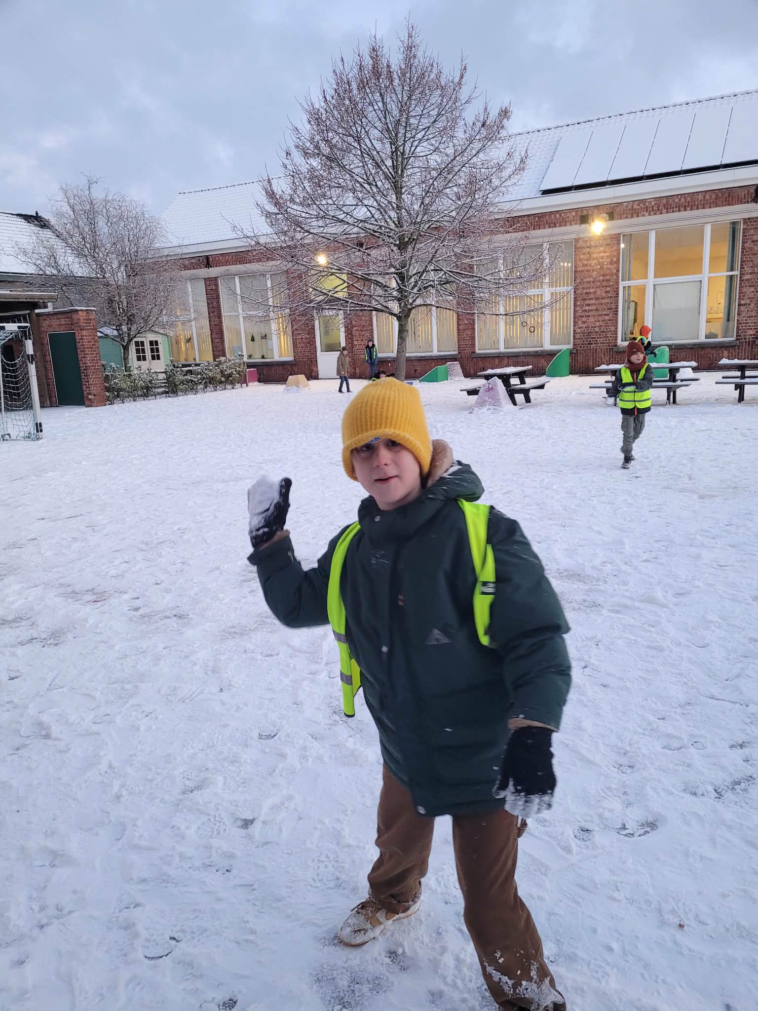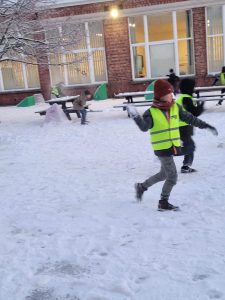 Met veel lachende gezichten, rode wangen en de juf als grootste slachtoffer (oeps 😄) werd het een heerlijk geslaagd klasmoment. Sneeuwballen vlogen in het rond, de pret was groot en stoppen? Dat wilden we eigenlijk niet.
