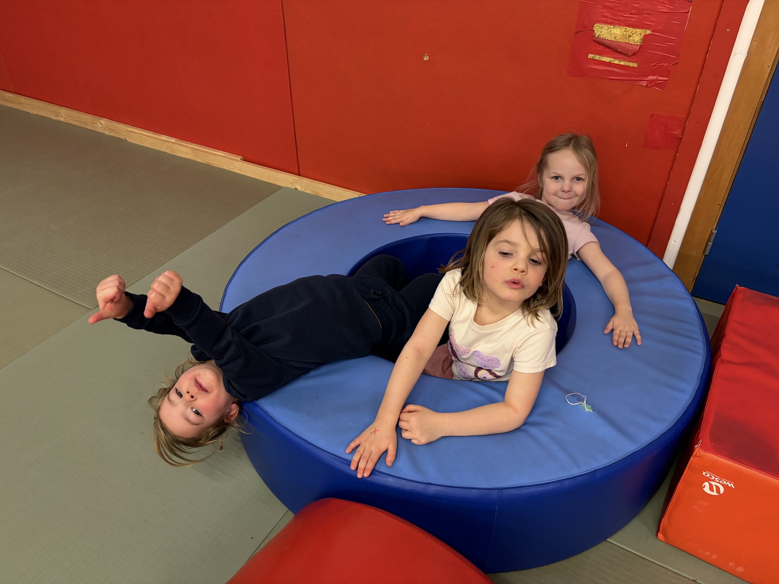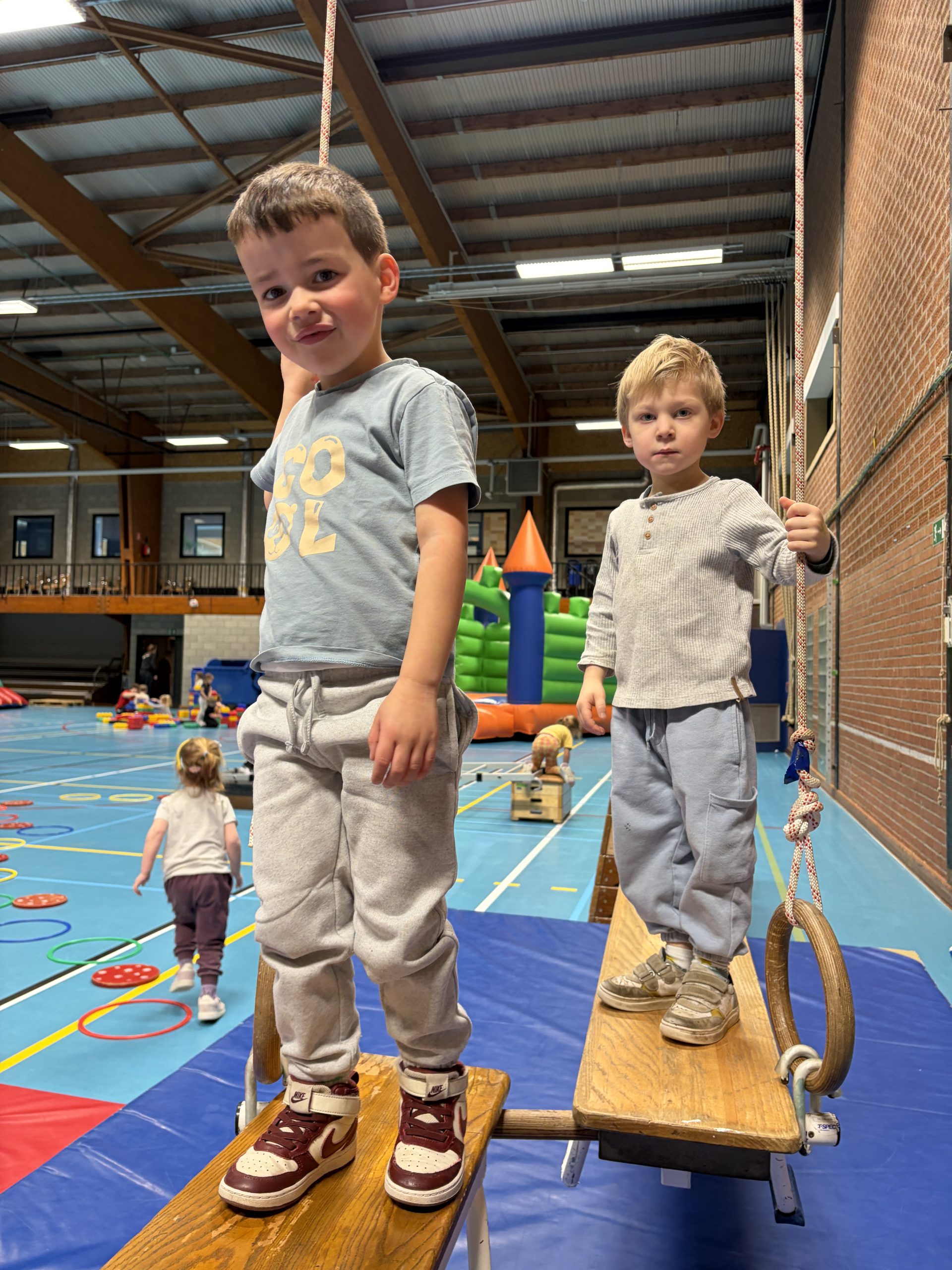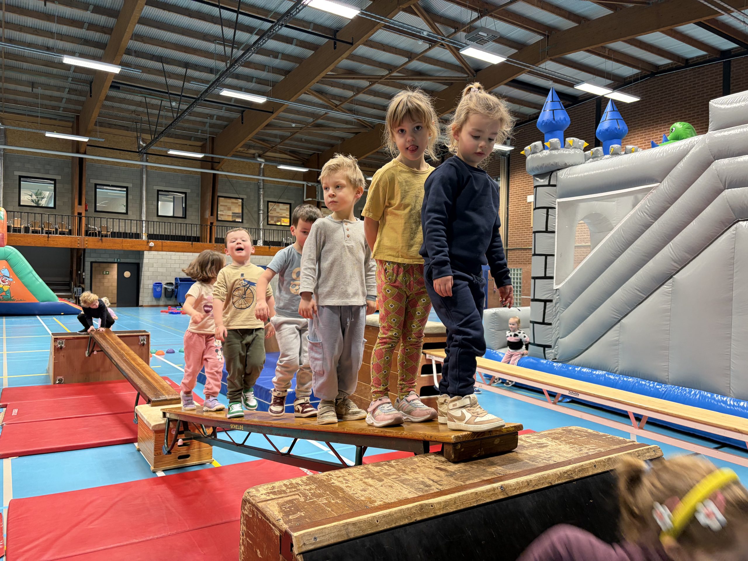 We konden ons uitleven op de springkastelen, legden allerlei parcours af, sprongen op de grote trampoline, speelden in het ballenbad en sloten af met de fietsen.