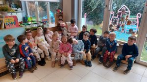 Vrijdag 13 maart kwamen we in onze pyjama naar school.