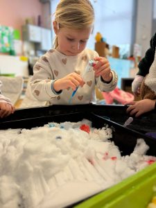 Naast het wennen aan terug naar school komen, speelden we ook met sneeuw … op de speelplaats maar ook in de klas!