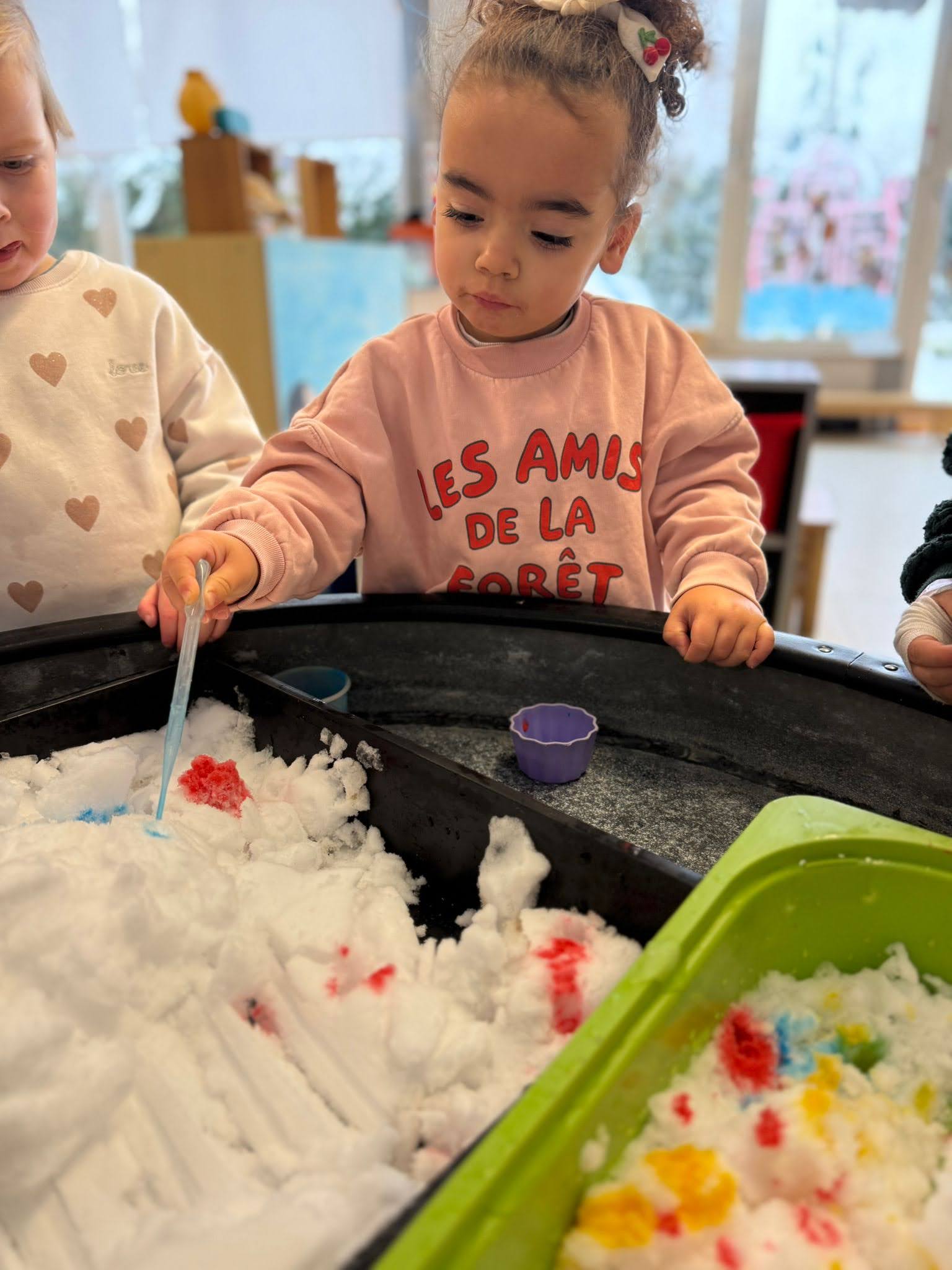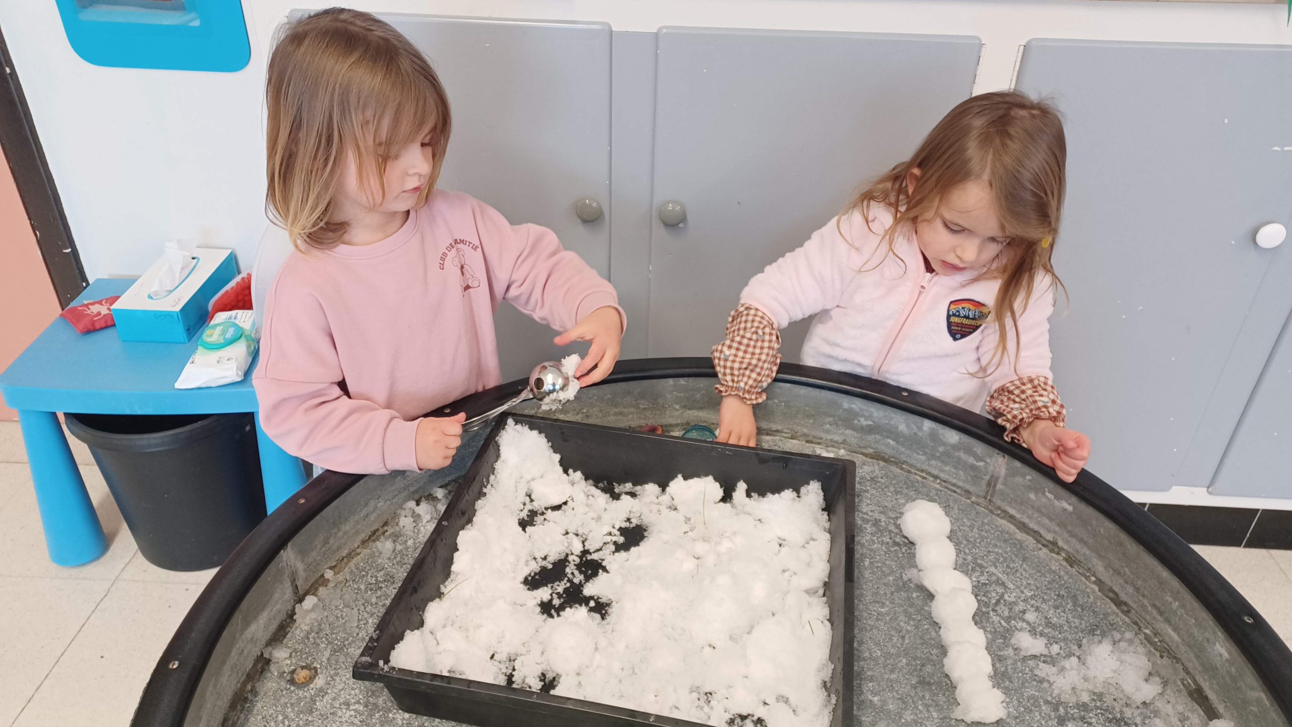 Naast het wennen aan terug naar school komen, speelden we ook met sneeuw … op de speelplaats maar ook in de klas!