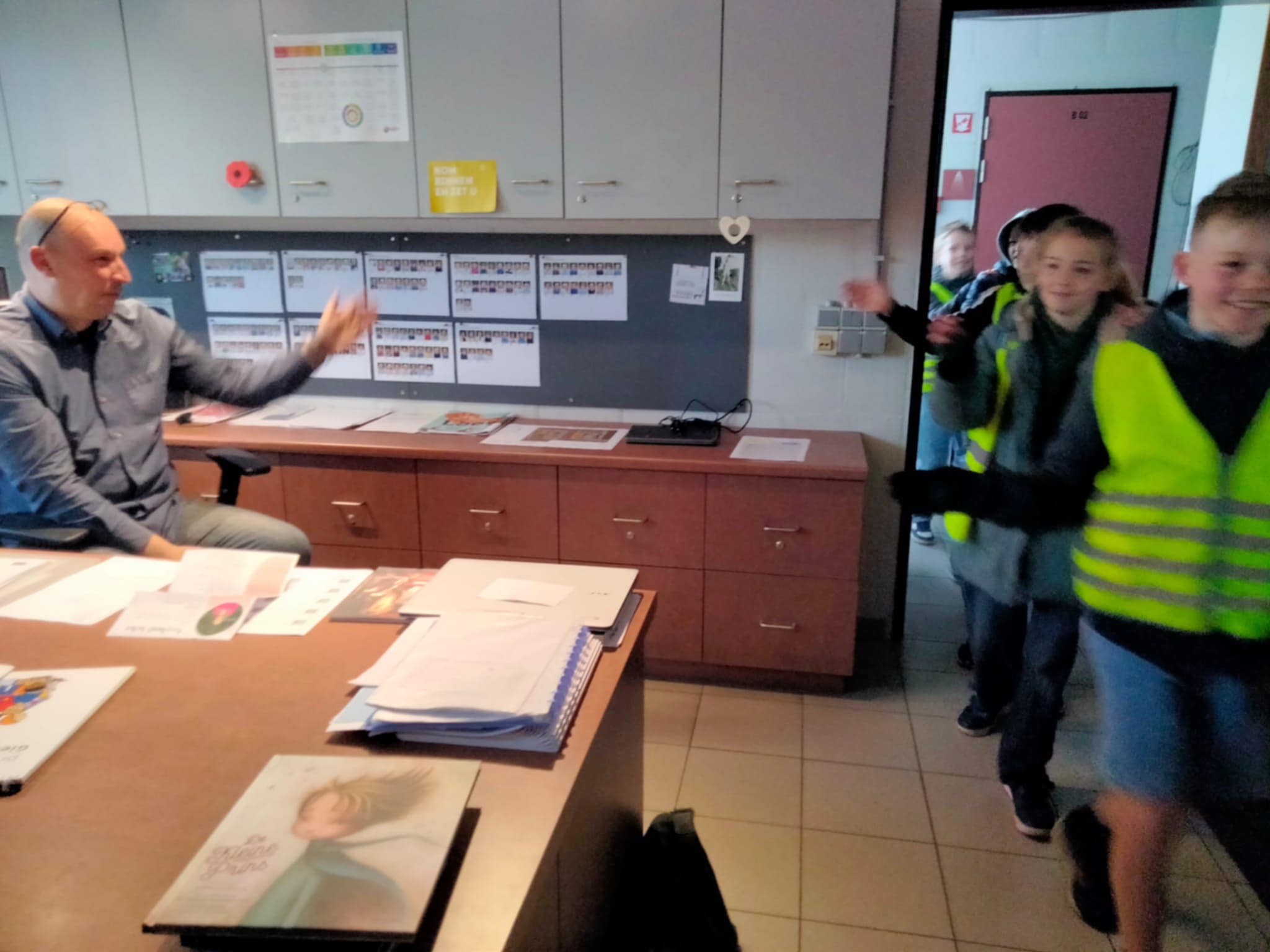 Juist ja… met een hele school die een polonaise doet door het bureau! 💃🕺