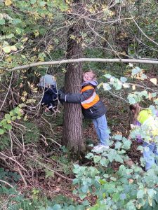 In de namiddag doken we opnieuw het bos in voor enkele opdrachten. Sommigen namen dat iets té letterlijk en gingen de bosgrond van héél dichtbij bekijken (lees: een smak op de aarde 😄). Geen paniek, iedereen kwam er met de glimlach vanaf – tenzij er een spin iets te enthousiast kwam kennismaken… dan toch liever weer rechtop, bedankt!