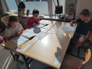 Tijdens de middagpauze kregen we gezelschap van een horde nieuwsgierige wespen. Onze reactie? Koelbloedig blijven? Mwah… niet echt. Maar we overleefden het – met veel gegil, gelach en gezwaai.