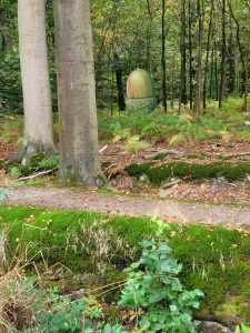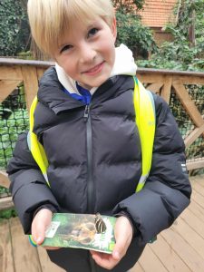 In het bos gingen we ‘shoppen’ – ja, echt waar! Geen winkelkarretjes of kassa’s, maar wél een heleboel producten waarvan de grondstoffen uit het bos komen. Choco, lindeshampoo, brandnetelthee, lucifers en zelfs meubelen (en een biertje…speciaal voor de juf, maar helaas was het flesje al leeg)… Je zou versteld staan van wat de natuur allemaal levert. Ondertussen leerden we ook het verschil tussen een boom en een struik én konden we eindelijk de Inlandse Eik van de Amerikaanse onderscheiden (leve de bladeren!).