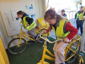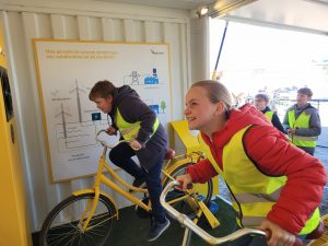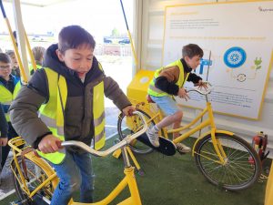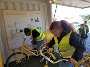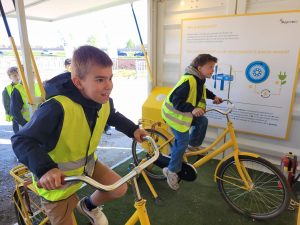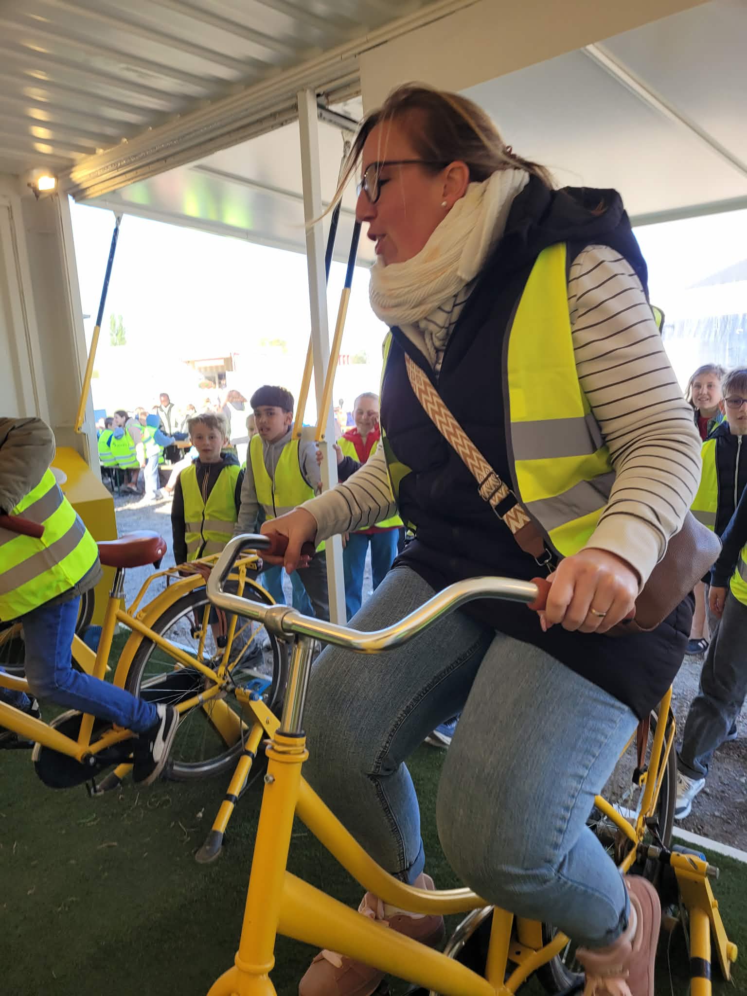 De juf trok heel wat foto’s… maar toen ze zelf op de fiets sprong om energie op te wekken, kregen de leerlingen plots de camera in handen… 😅📸 Oh jeetje!