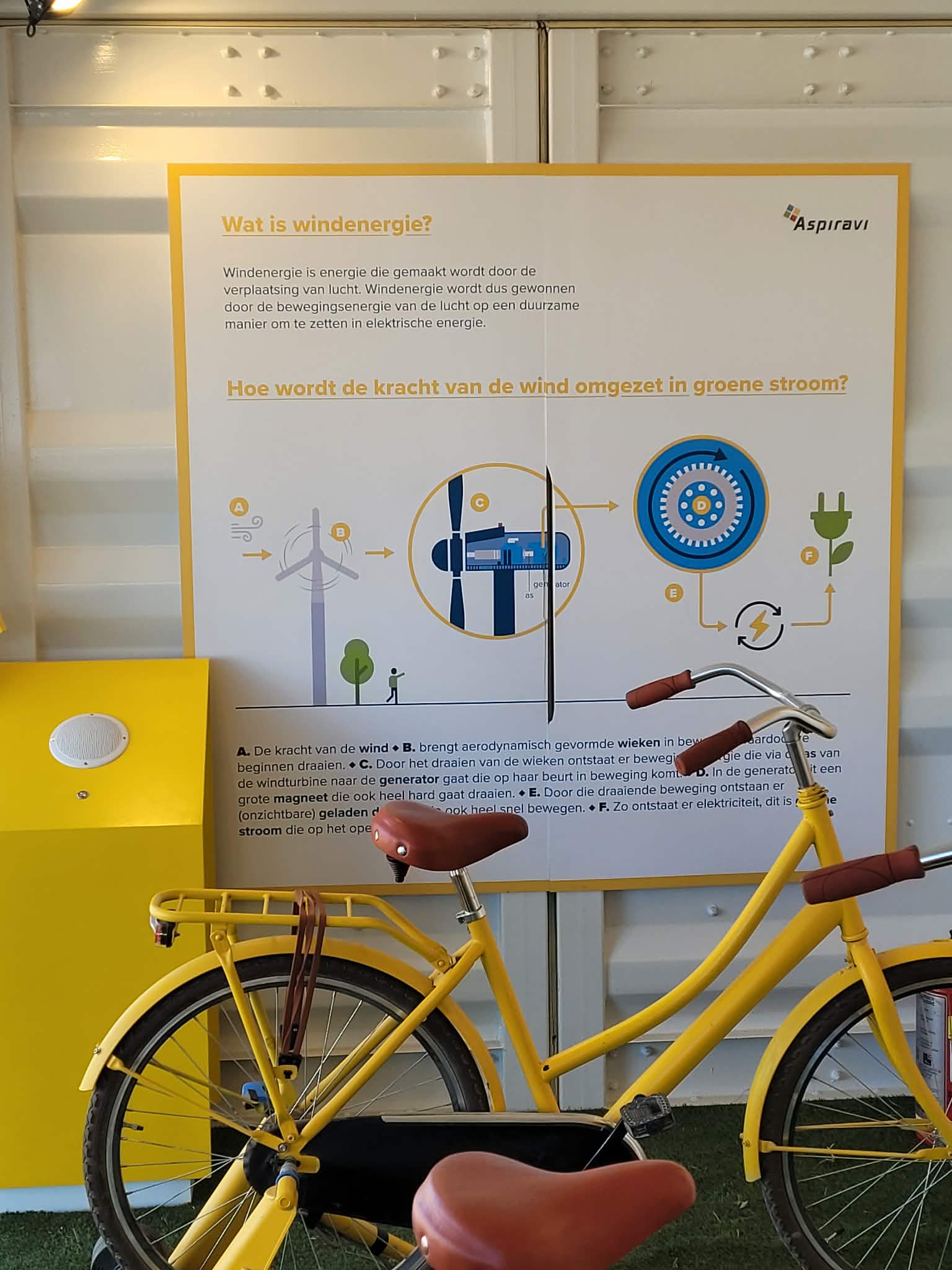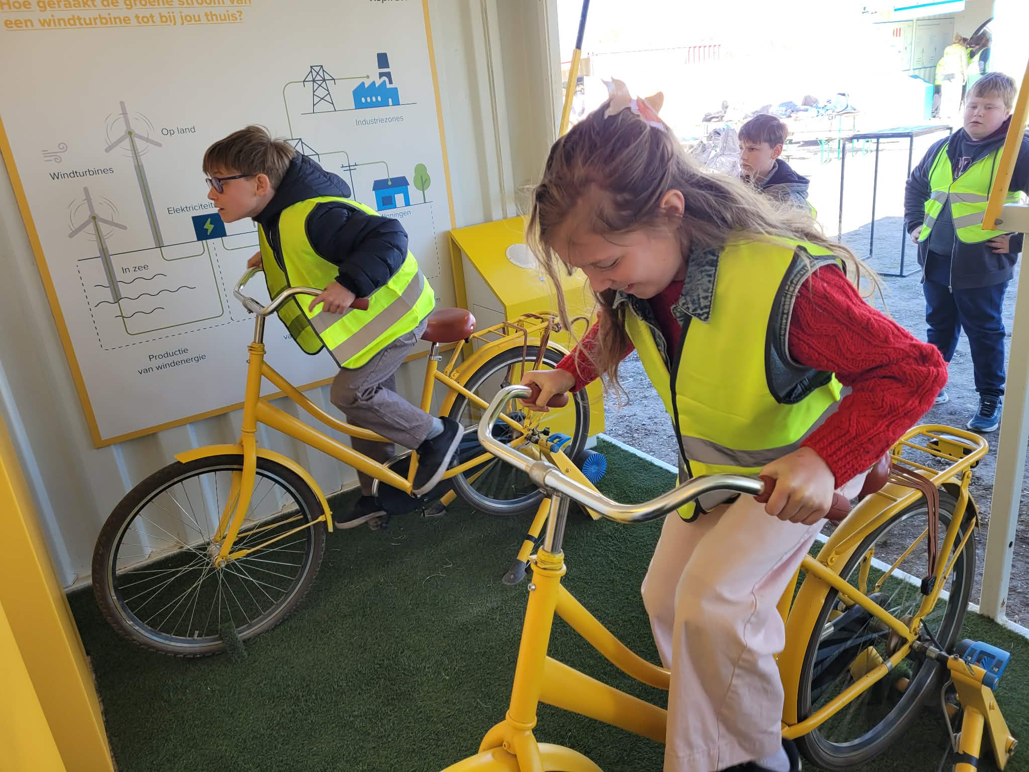 We doken in verschillende containerklasjes en maakten kennis met het begrip hernieuwbare (groene) energie. Niet gewoon luisteren, maar vooral zelf doen en beleven: