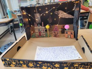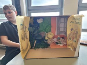 een boekbespreking maken en die creatief verwerken in een kijkdoos.