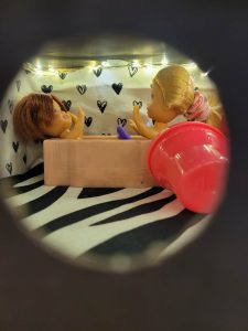 in een museum en tijdens een tentoonstelling (stappen met zachte voeten en kijken met grote ogen 👀).